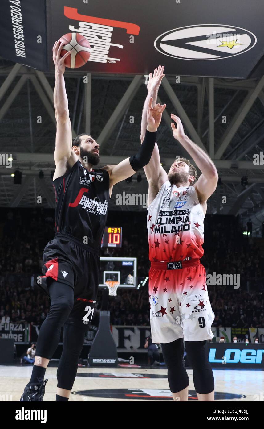 Tornike Shengelia Segafredo Virtus Bologna L Thwarted By Nicolo Melli Armani Exchange Milano During The Series A1 Italian Lba Basketball Championship Match Segafredo Virtus Bologna Vs Aix Armani Exchange Olimpia Milano At