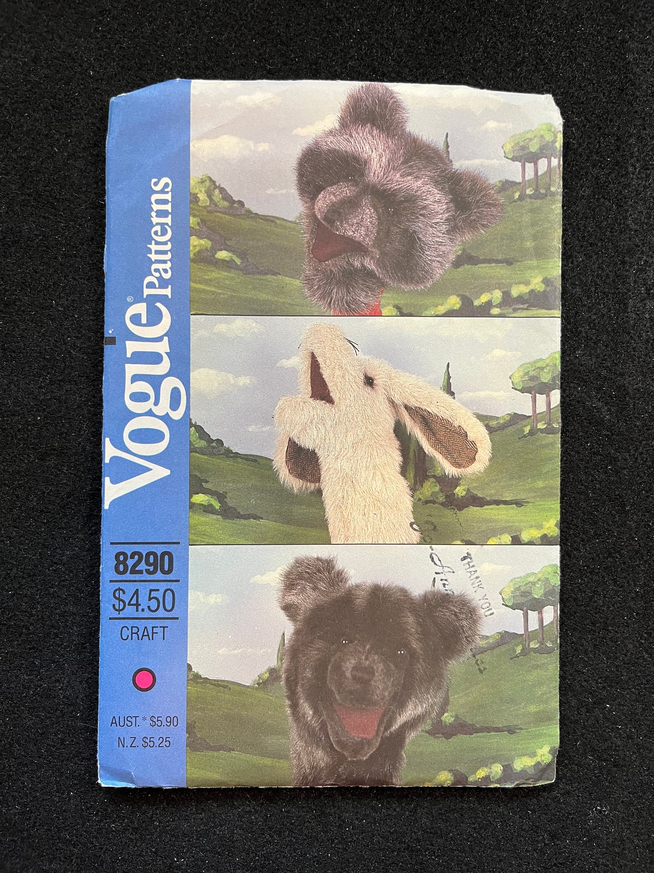Vogue Sewing Pattern 8290 Fur Pile Stuffed Puppets Ff Uncut Etsy